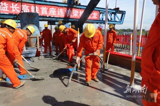 新湖南:常益长高铁首座一连梁桥合龙
